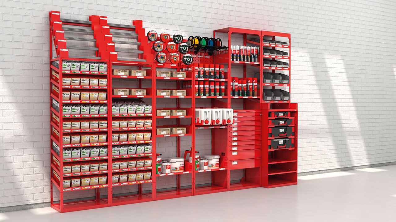 Konceptet består i grunden av ett unikt skräddarsytt lagersystem. Självklart hjälper dig hela vägen, från beställning och montering till kontinuerlig påfyllnad och service efter ditt behov.